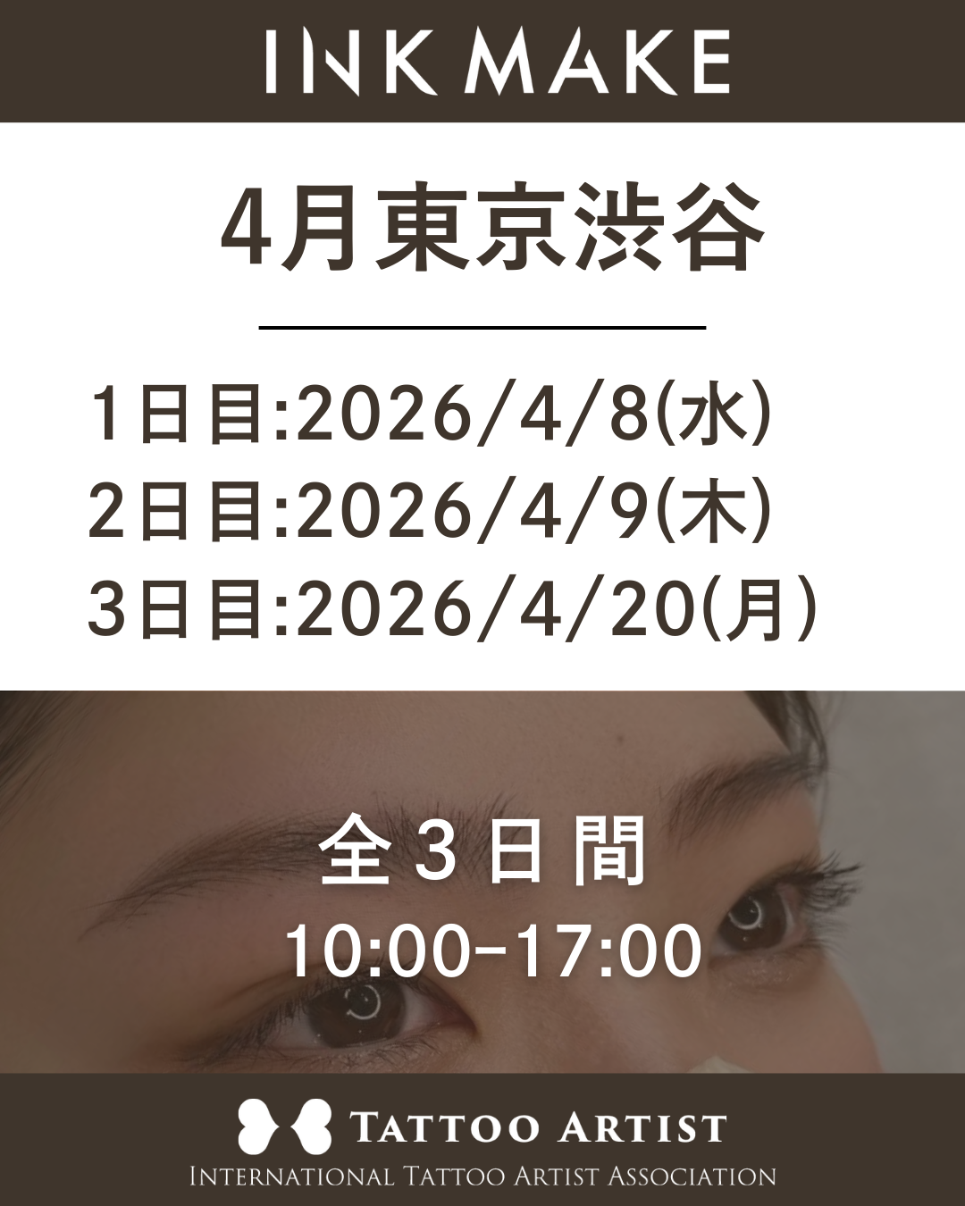 【東京/恵比寿】インクメイク講習受講費/2026年3月グループ③ 3月24日(火)スタート