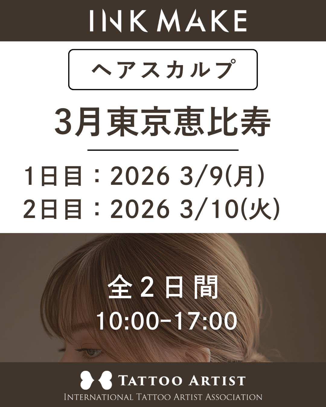 【東京/恵比寿】ヘアスカルプ・インクメイク講習受講費/2026年3月グループ① 3月9日(月)スタート