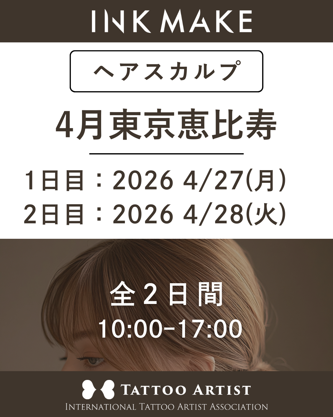 【東京/恵比寿】ヘアスカルプ・インクメイク講習受講費/2026年4月グループ① 4月27日(月)スタート